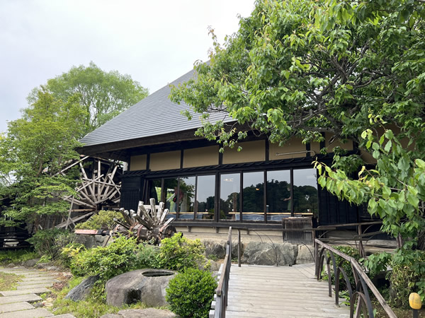 風情あふれる空間。圧巻の水車が迎えてくれる
