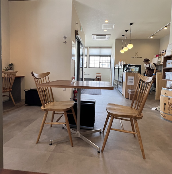 共用のイートインスペースでは、それぞれの店舗で購入したものを自由に楽しめるスタイルです♪