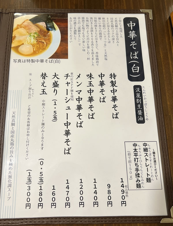 基本となるのは「中華そば(白)」と「中華そば(黒)」の二種類。