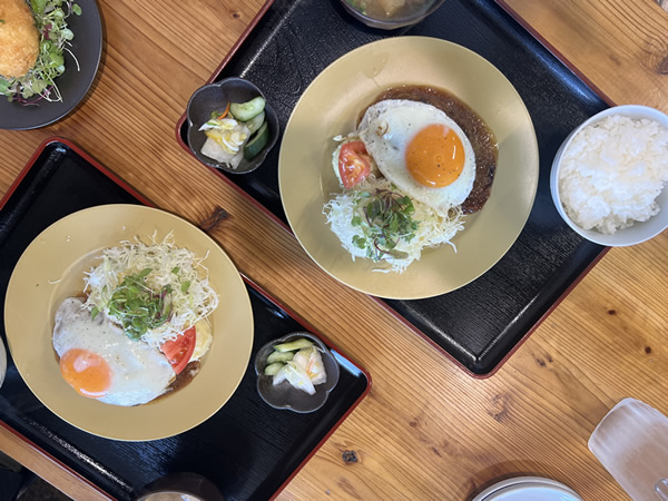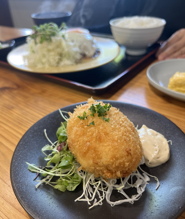 絶品!目玉焼きハンバーグ定食とクリームコロッケ&出汁巻き卵