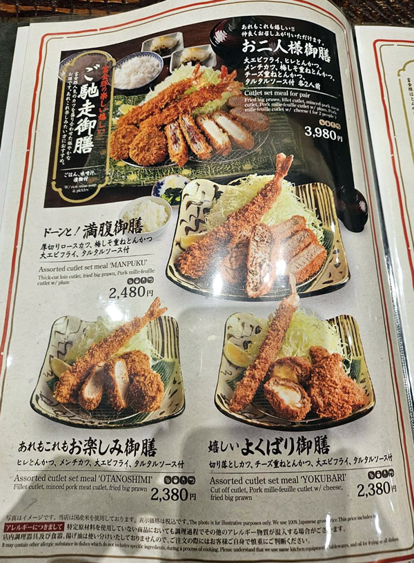 とんかつがメインですが、色々種類があって悩みました^^