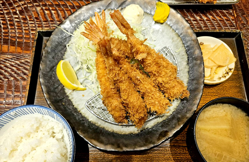 神のエビフライ定食とロースとんかつ
