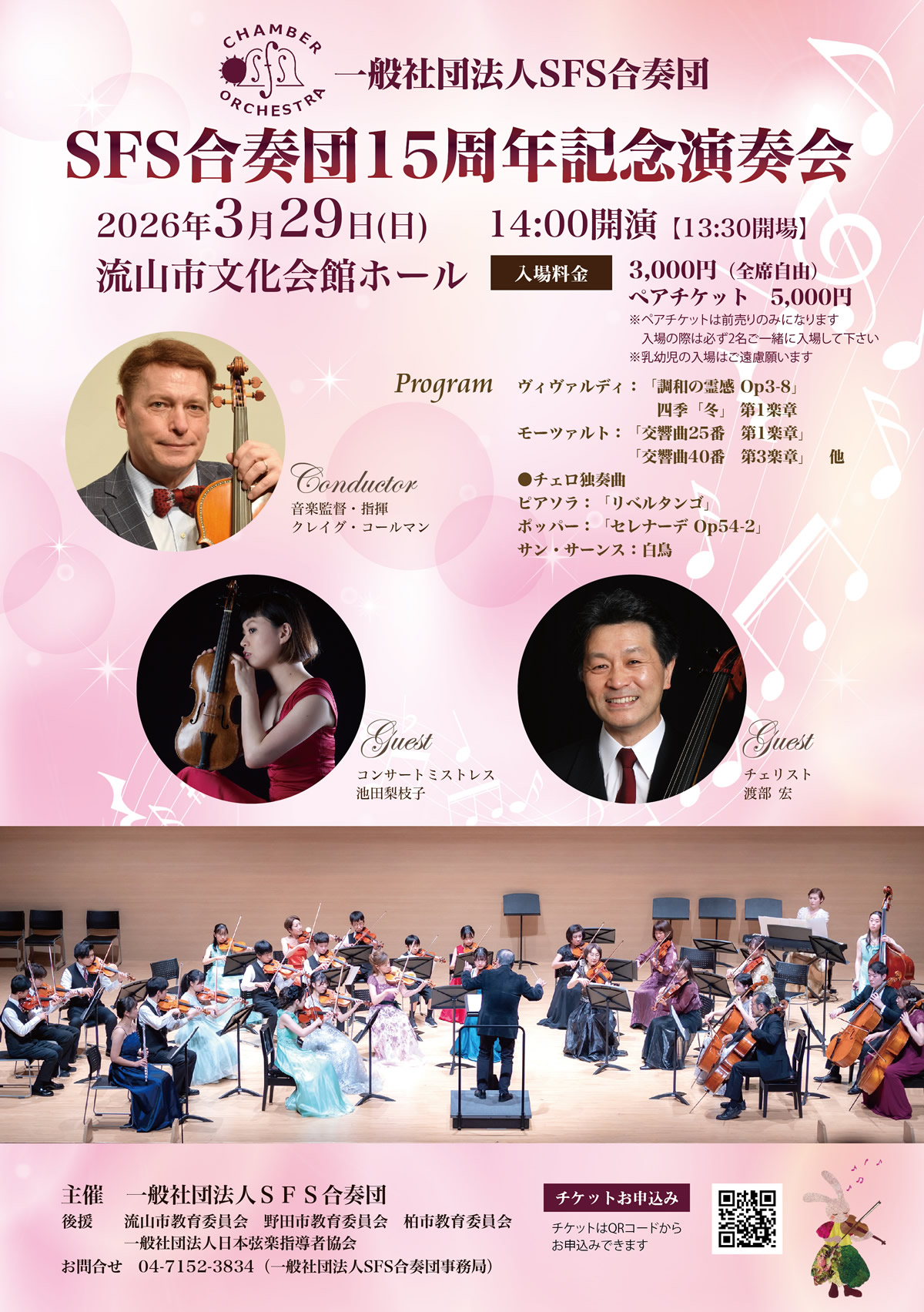 一般社団法人SFS合奏団の15周年記念演奏会です🎵