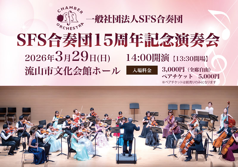 一般社団法人SFS合奏団の15周年記念演奏会です🎵